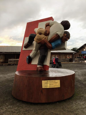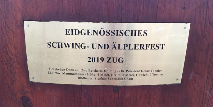 Oben links: Festskulptur von Bildhauer Stephan Schmidlin, Cham. Daneben Gedenktafel