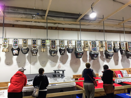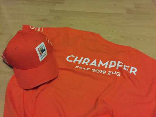 Dritte Reihe: Gabentempel, rechts das Tenü der vielen Helfer "Chrampfer ESAF 2019 Zug"