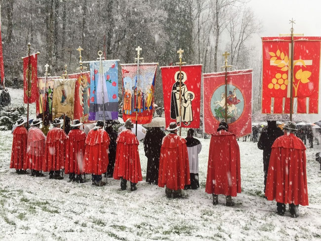 Die uralte Tradition eines jährlichen Kreuzgangs von Näfels zur Sebastianskapel-le nach Schänis stand diesmal unter einem guten Stern. Ein frischer Morgen mit einer kühlen Brise aus dem Norden brachte ideale Bedingungen für die Pilger-schar, die zu Fuss den etwa zweistündigen Gang um halb sechs Uhr in der Frühe durch Feld und Flur und die Dörfer Oberurnen und Niederurnen antraten. Etwas später startete auch eine stattliche Schar Velopilger und schliesslich kamen per Auto noch einige nach, die nicht mehr so gut zu Fuss sind.