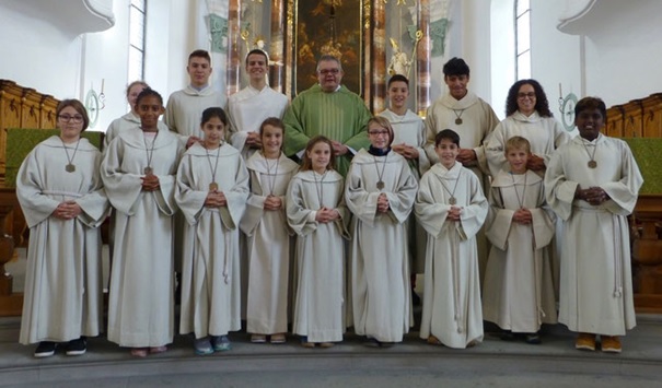 Pfarrherr und Domherr Harald Eichhorn mit seiner Ministrantenschar im August 2018