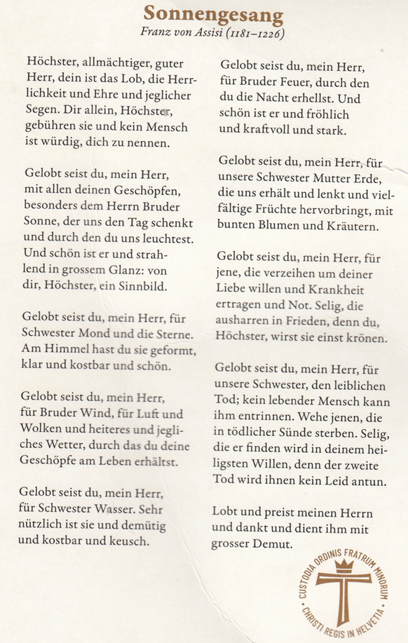 Wir erschrecken über die Abgründe des Hasses, und welche Gräueltaten auch in unserer Zeit möglich sind. Wo der Hass beginnt, endet der Friedenswille, und wir sind auch nicht immun gegen wütende Gefühle. Hass darf nicht in das Zusam-menleben in der Schweiz eindringen. Wir müssen mit aller Macht dagegen aufstehen, denn Hass erzeugt immer noch mehr Hass.