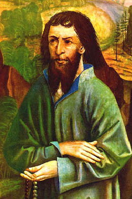 Das älteste Bild von Bruder Klaus (Ausschnitt), lebensgrosses Gemälde von 1492 auf einem Altarflügel der alten Pfarrkirche Sachseln, heute im Museum Bruder Klaus.