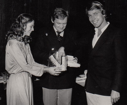 Foti Fränzel überbrachte diese Foto als Erinnerungen an eine Radio-sendung aus dem "Pfauen" Einsiedeln aus den siebziger Jahren. vlnr: Marie Theres Gwerder (eine Nichte von "Schtäi Sepp", Näfels, TV-Sprecherin Schweizer Fernsehen, meine Wenigkeit als Mitglied des Vor-standes SRG-Schwyz und Kurt Zurfluh, Radioreporter und TV Star (Nachfolger von Wisel Gyr) bei der Auslosung eines Zuhörer-Wett-bewerbs einer Radiodirektsendung. Foto: Foti Fränzel, Einsiedeln.