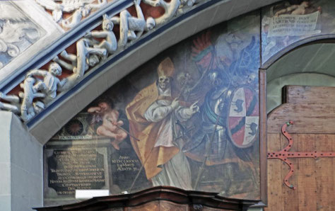 Epitaph für Weihbischof Georg Sigismund Miller (1615-86). Er weihte 1667 die Kapelle im Freulerpalast Näfels, 1679 das Kloster auf dem Burgstock ein. (Foto: David McLion, Schwanden, 1942-2021)