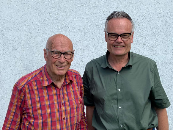 Das glückliche Ehepaar Traudi und Niklaus Keller-Cuolt beim gestrigen Kurzbesuch auf Rhodannenberg im Klöntal. Vor 70 Jahren waren Niklaus und ich im Seminar Rorschach zwei aufgestellte "Semi".