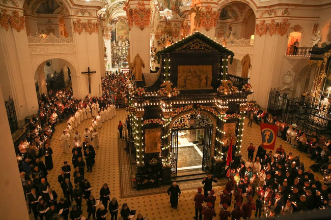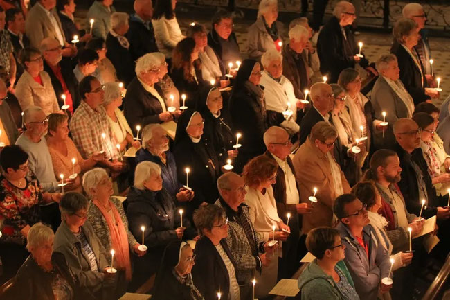 Ich bin regelmässiger Gast seit 52 Jahren. Festzustellen ist eine sinke-nde Teilnehmerzahl. Diesmal aber waren die Kirchenbänke bereits um 19.30 Uhr voll besetzt. Ungezählte Klappsessel wurden herbeigeschleppt und die Gänge waren mit stehenden Pilgern ziemlich belegt.