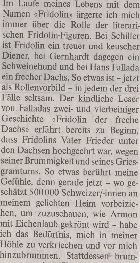 Dä langjährig Redaktor Victor Kälin erinnert sich, das dä Franz a dä Wuchänän-dä nüd sältä a 7-8 Verastaltigä verbie hät müssä für’d Ziietig.