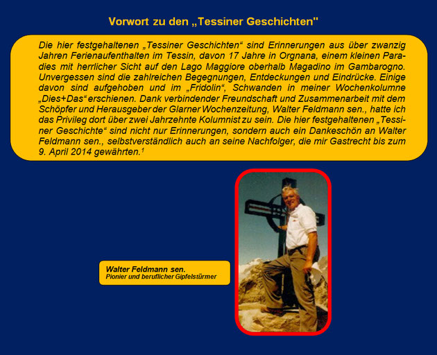 Es war am 12. August anno domini 1923 als die Wäggitaler, fein geputzt, mit Rucksack angetan, mit dem 7 Uhr-Zug ins Tessin abdampften. Zu unserem all-gemeinen Bedauern mussten wir die Kollegen Baese und Bachmann zurück-lassen.